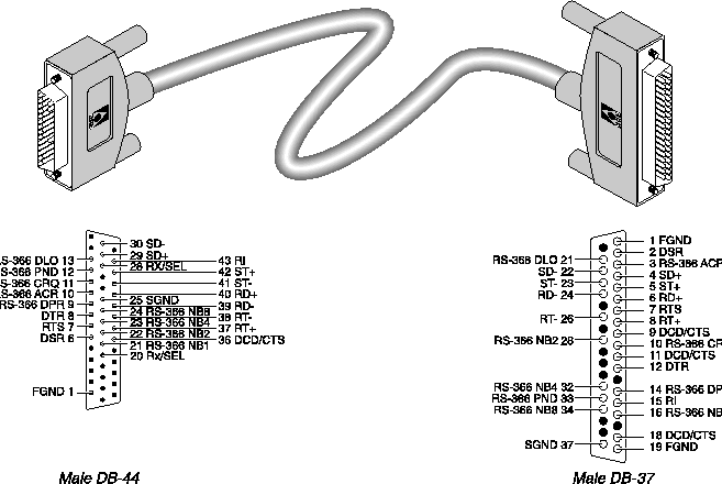 Note: To manufacture an RS-449 cable for Cisco routers, use the above wiring list and connect the following DB-37 pins to SGND: