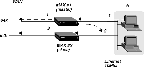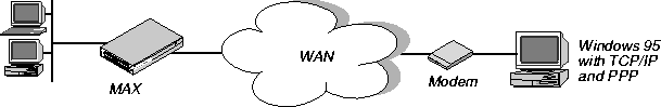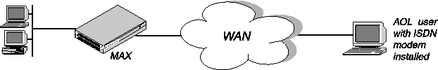 The MAX terminal server processes asynchronous calls from modems, ISDN modems (V.120 terminal adapters), or raw TCP. Those calls may be logged into the terminal server interface or, if they contain PPP, passed to the router.