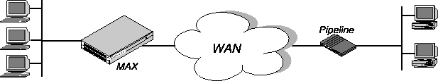 Note: If NetWare servers are supported on both sides of the WAN connection, we strongly recommend that you use an IPX routing configuration instead of bridging IPX. If you bridge IPX in that type of environment, client-server logins will be lost when the MAX brings down an inactive WAN connection.