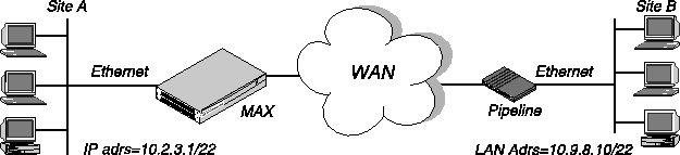 The following example displays the routing table for a MAX configured to enable IP routing: