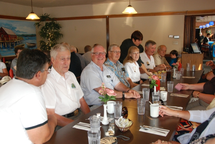 The Class of 2013 with spouses. From left: Teacher Dottie Welch, Ralph and Barb MacDonald, Jerry and Faye Germon, Roger Sherren, Deborah Northrup, Réal Caron, Wilma and Laurie Illsley, Teachers Betsy Gotta and Kerry Fletcher, Carol and Don Scott, Christine and Martin Belanger. Missing round dancers: Teacher Roy Gotta, students Barry and Claire Walker, Chris and Ruby Ayres, and Lionel and Janet Crowe