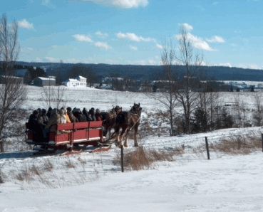 After bundling up good and warm we alldrove up the road a couple of miles to a small farmand went on an old fashioned sleigh ride; over thefields and through the woods and back to theirfarm for hot chocolate and do-nuts.