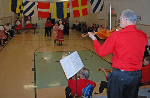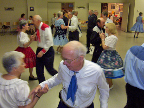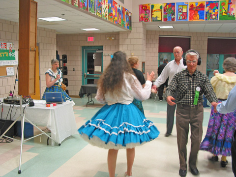 Friday evening, March 12 saw 5 enthusiastic squares whooping it up at North Woodside Community Centre to the toe-tapping music of the Metro Fiddlers. Caller Dottie Welch entertained dancers with a unique and enjoyable mix of modern and traditional choreography. Between square dance tips the fiddlers offered opportunities to demonstrate waltzing skills (right).