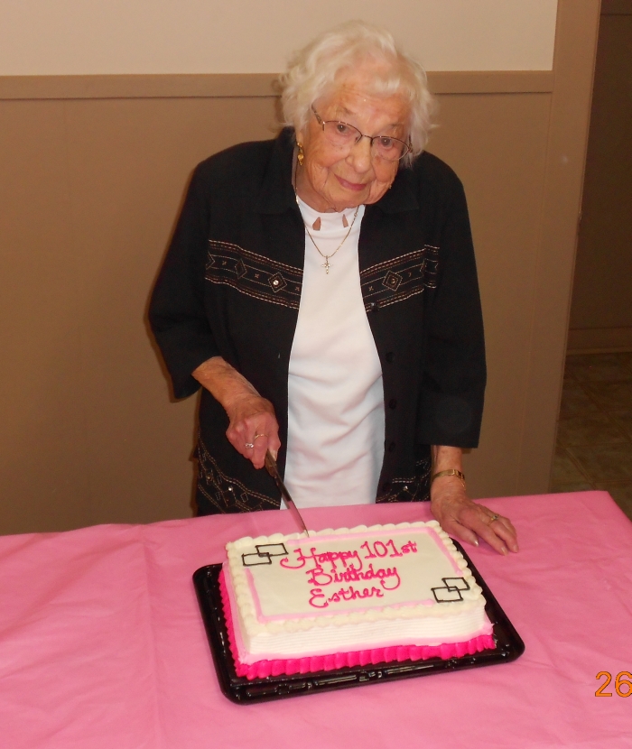 Cutting her birthday cake