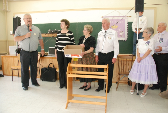 On Sunday afternoon following the MCCA Convention folks from across the Maritimes put on their dancing shoes to assist Laurie and Wilma Illsley through a difficult time. Laurie's main income as carpenter and general handyman had been put on hold for several months because of a detached retina. Admission to the dance was "by donation", and our community came through big time - another example of Maritime generosity. More help came from the proceeds of a raffle for a beautifully crafted quilt rack donated by Marshall Dunn.