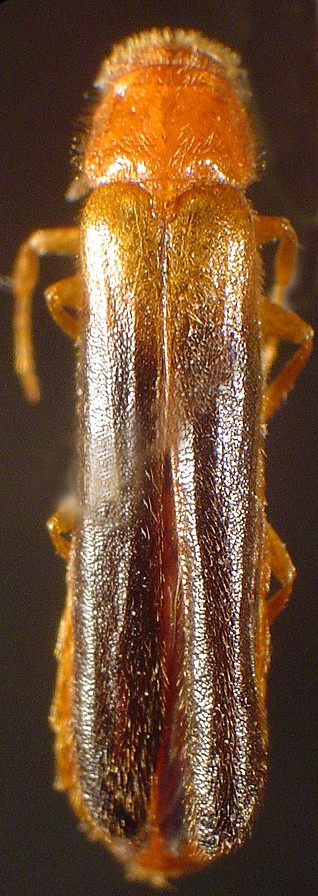 Elateroides lugubris (Say) (the so-called "sapwood timberworm') is a member of the unusual family, the Lymexylidae - the ship-timber beetles. There are only two (or perhaps three) species in this family known from North America. In the Atlantic region it is known from New Brunswick, Nova Scotia and Newfoundland. In Nova Scotia there are only a small number of scattered records (Cumberland, Halifax, and Kings counties). They are infrequently encountered and Young (2002) notes that adults are probably short-lived.