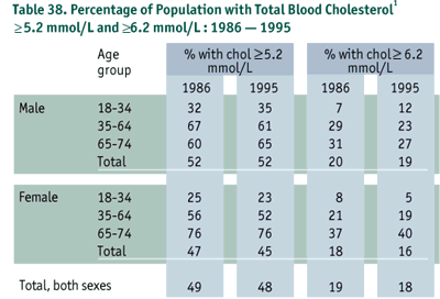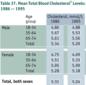 [2] Plasma lipid levels measured in the 1986 survey were adjusted (3% increase) to ensure comparability to serum values measured in the 1995 survey.