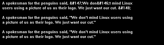 as an unprintable NUL character with the high bit set.) The appropriate entity