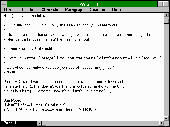 A message to userhelp arrived in my mailbox last March that I couldn't