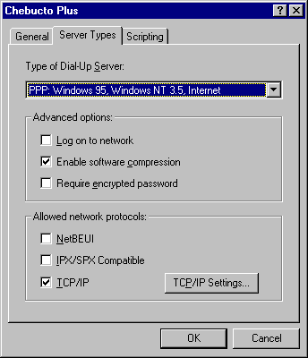 3.13 Click on Server Type button (or tab in OSR2 release) in Chebucto Plus dialog box